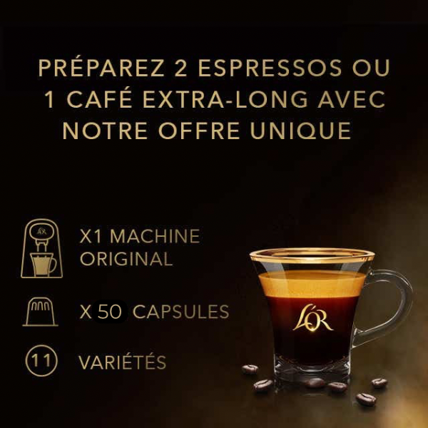 La technologie exclusive L'OR Barista permet de préparer un café d'exception en simple ou double dose. Design élégant et compact.